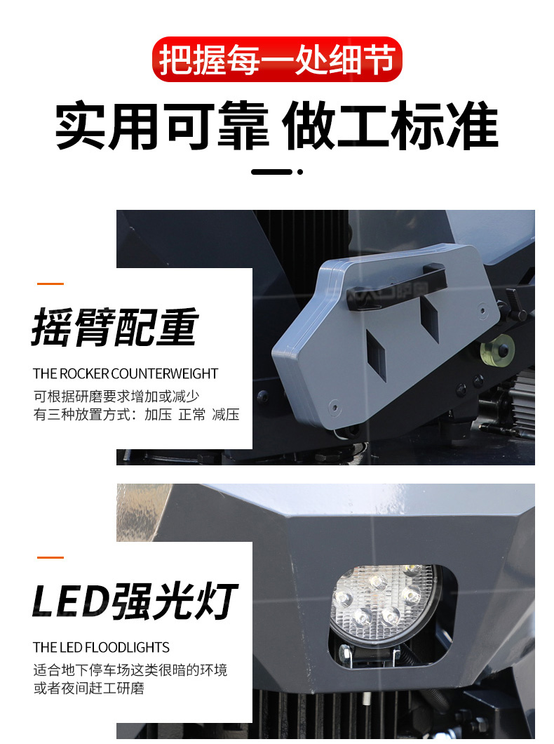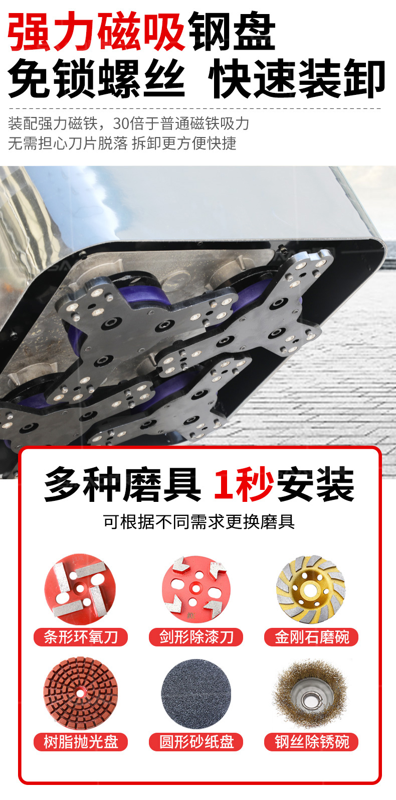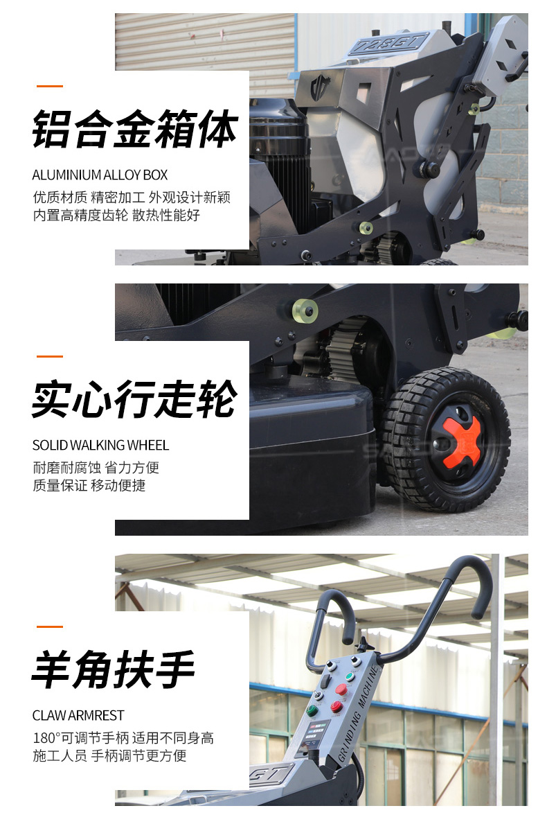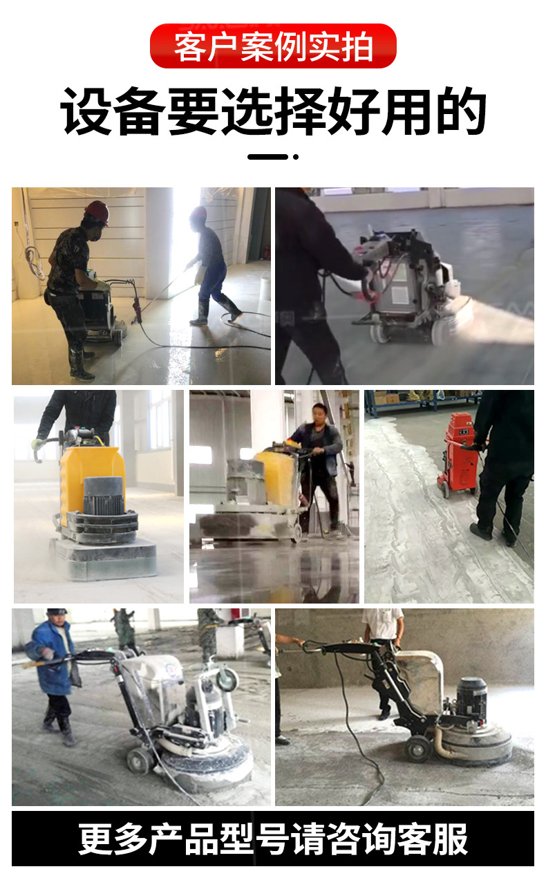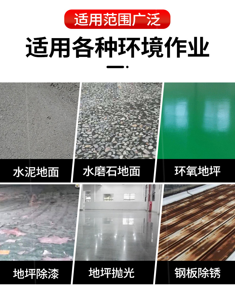 产品别名: 地坪研磨机、地坪打磨机、石材养护机、地面翻新机 产品用途: 其广泛用于混凝土地面、石材地面的研磨、抛光,终达到旧地面翻新、新地面无尘的效果。具有轻便、灵活