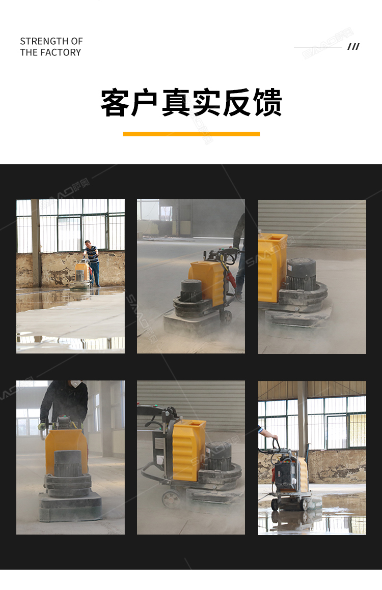 地坪研磨机其广泛应用于混凝土地面,石材地面的研磨,抛光,最终达到旧地面翻新,新地面无尘的效果。 产品参数: 型号 电压 变频器 电机功率 工作宽度 磨盘转速 磨头数量 水箱容