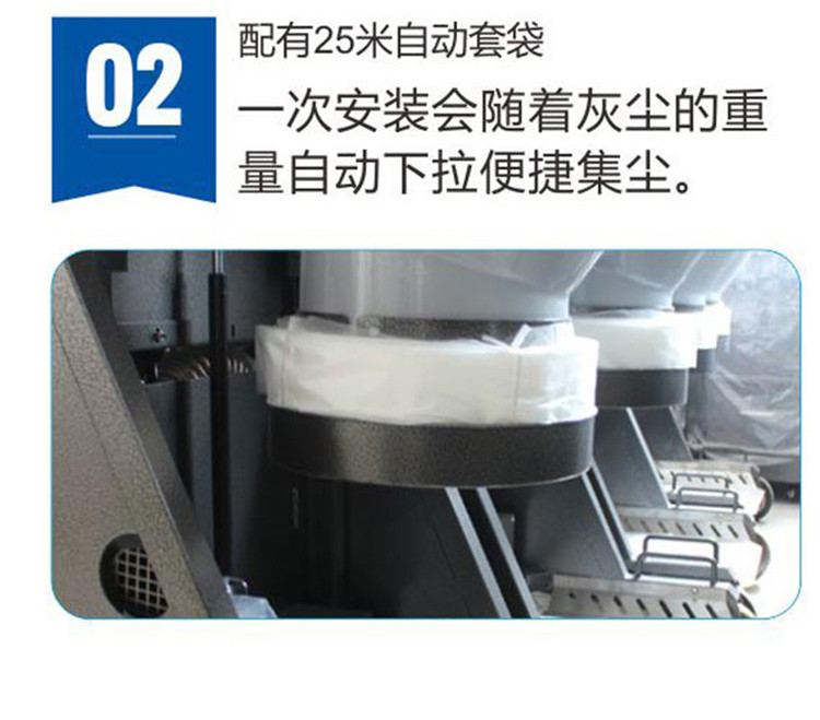 2.配有25米自动套袋,一次安装会随着灰尘的重量自动下拉,非常便捷,而且节省清洁时间。