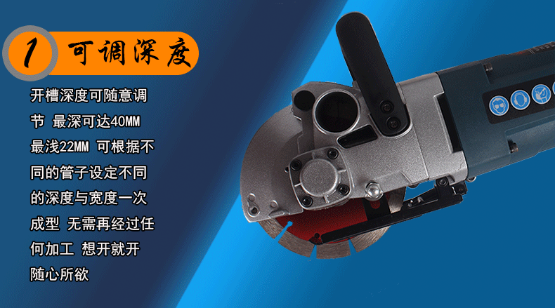 5、开槽深度随意调节:不同角度可调,造型优美,随线所需,45度,180度,360度均可旋转开槽,运用自如;