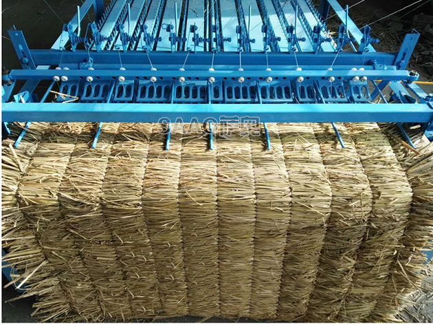 帘子打好之后,机器前方加装了一付对滚,工作时对滚定时将草帘传出,作用是草帘不偏跑,平整光滑。