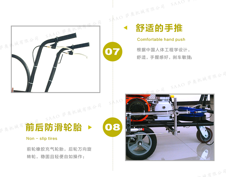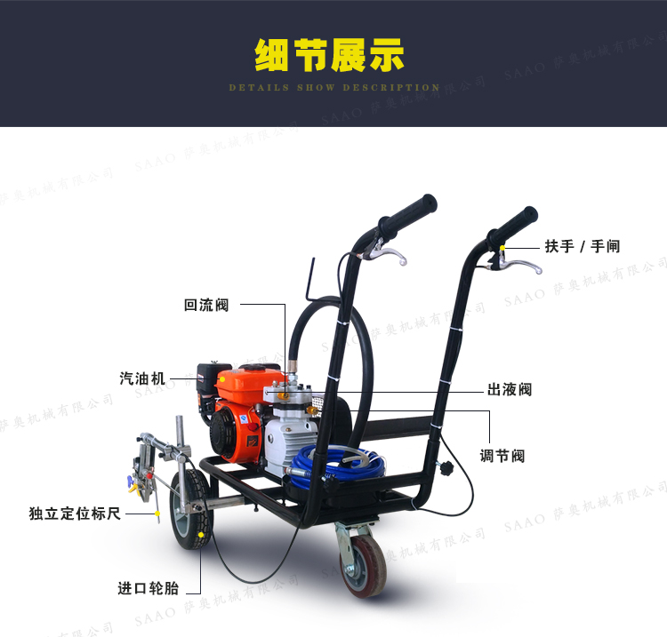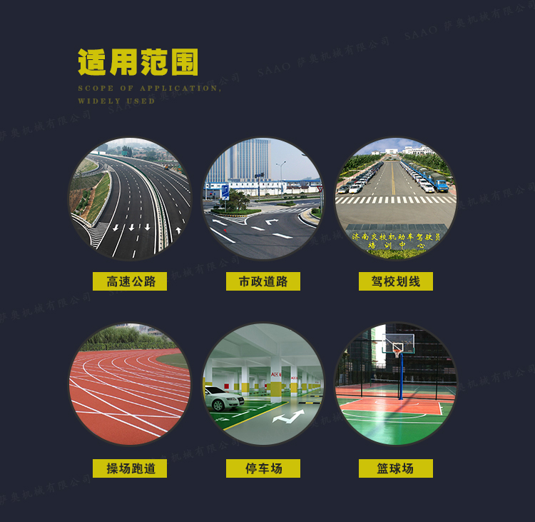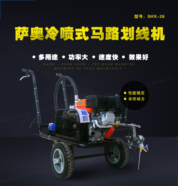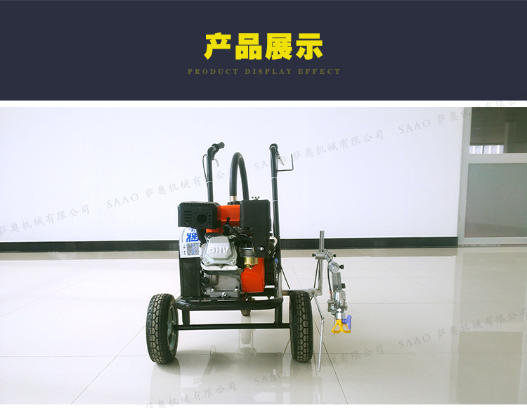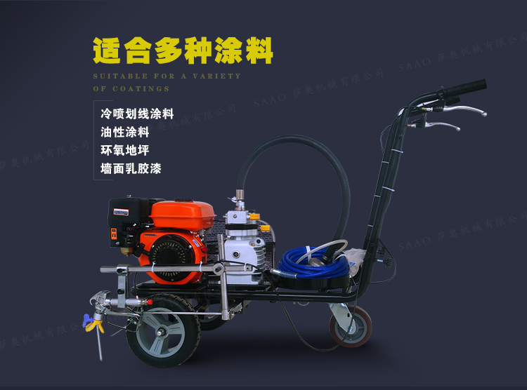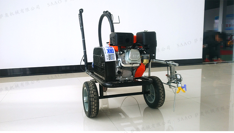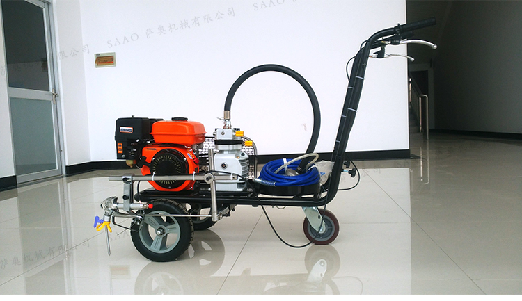 冷喷划线机用汽油机带动高压泵的无气喷涂技术运用于运动场地划线车,喷出的线型清晰、流畅、饱满、均匀、工作效率高。