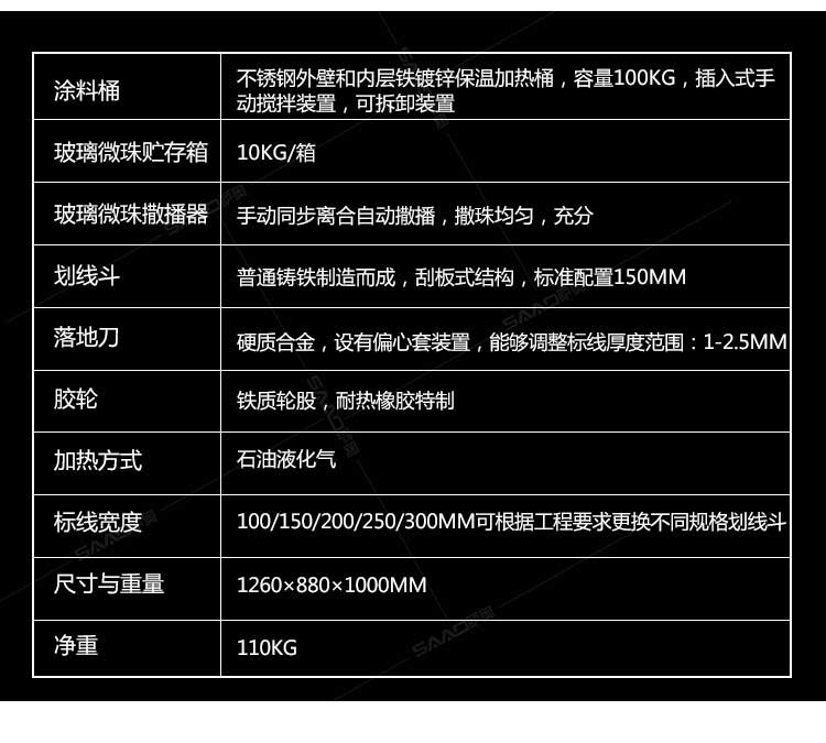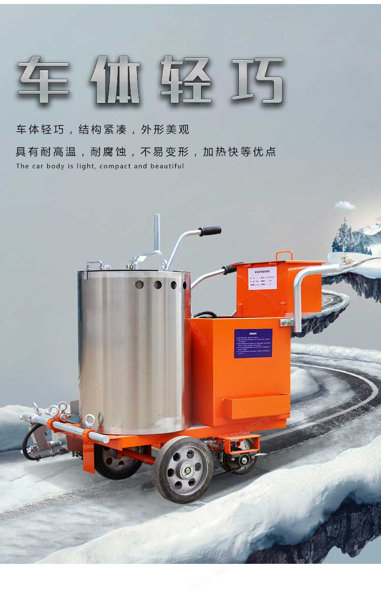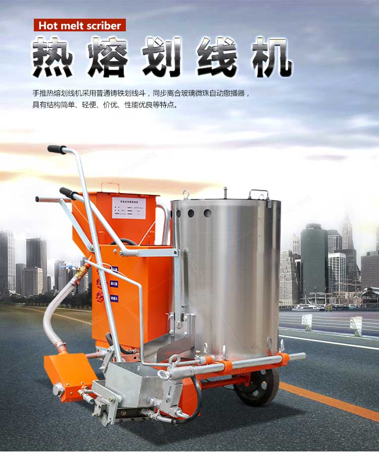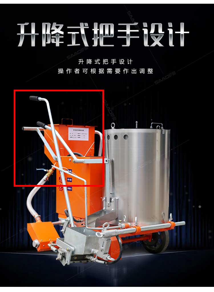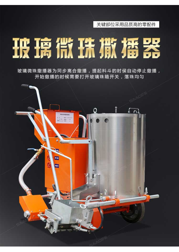 SAAO-160手推热熔划线机采用普通铸铁划线斗,同步离合玻璃微珠自动撒播器,具有结构简单、轻便、价优、性能优良等特点。