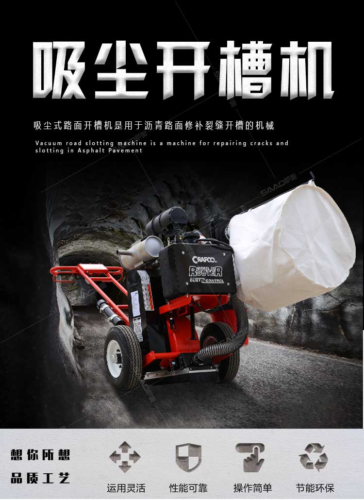 吸尘式路面开槽机是用于沥青路面修补裂缝开槽的机械,它具有体积小,行进灵活,工作可靠效率高的优点,是沥青路面修补灌缝前对裂缝开槽的机械。 ...