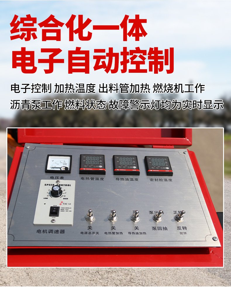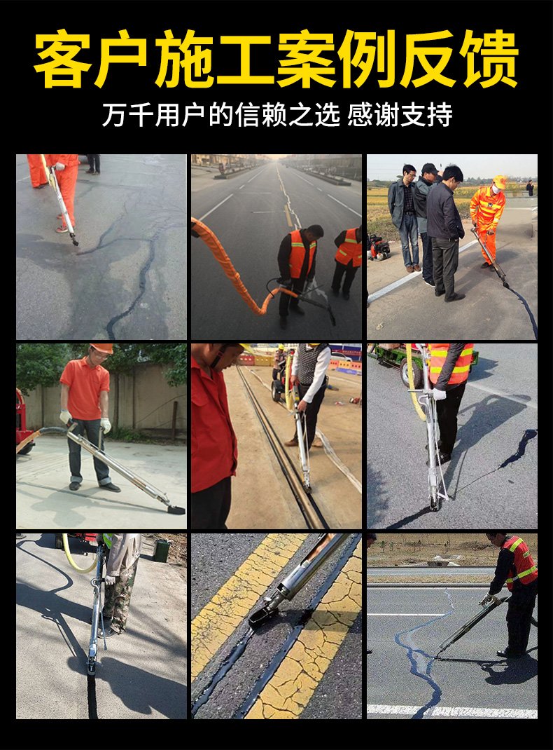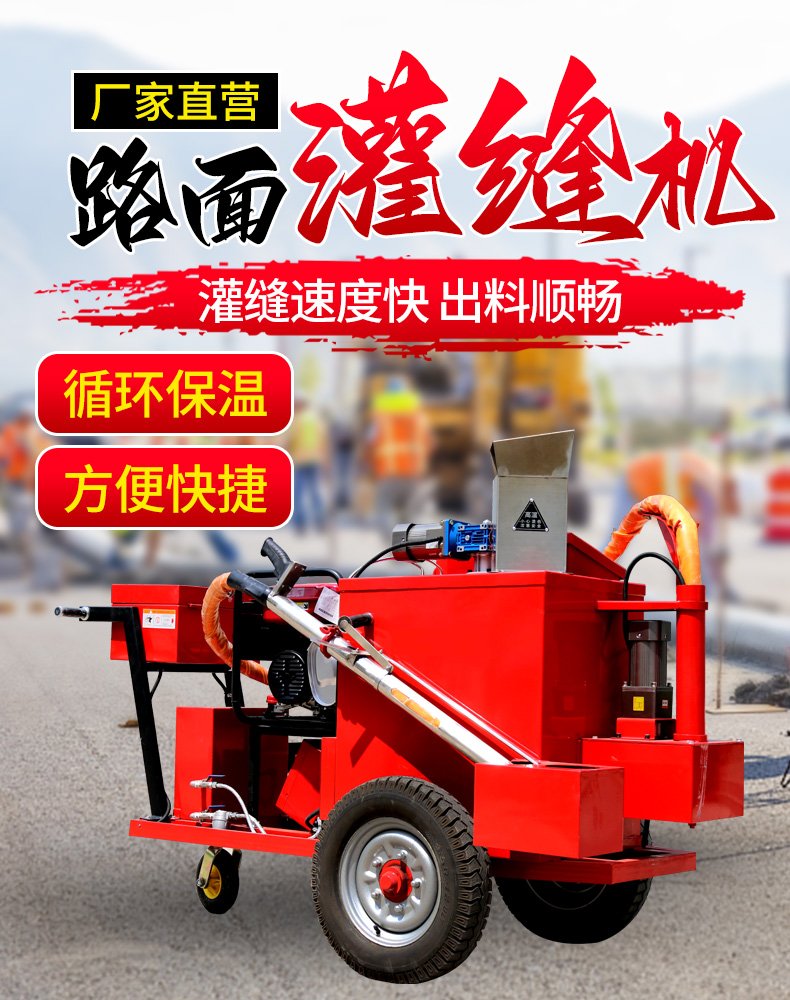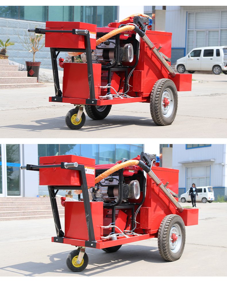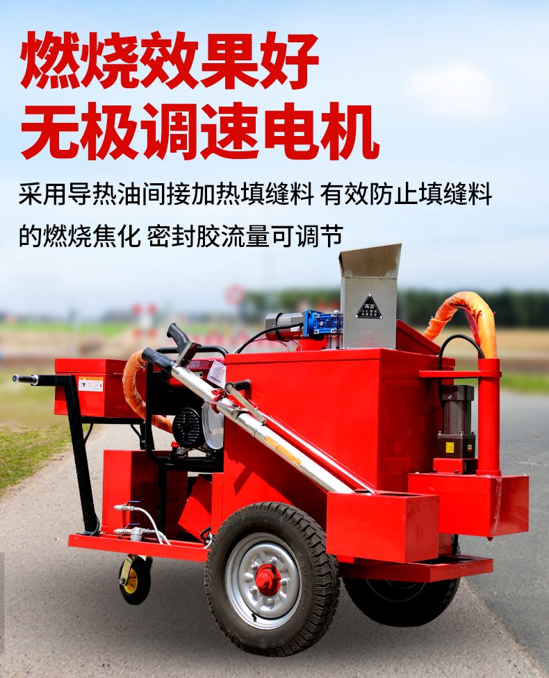 沥青灌缝机100D热熔采用导热油夹套设计,可以加热熔化普通沥青,改性沥青和专用裂缝密封胶,料泵利用压力将熔化材料喷注到清理过的沥青混凝土路面裂缝中进行修补。