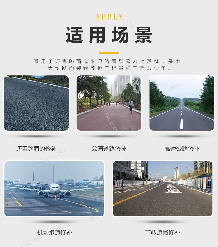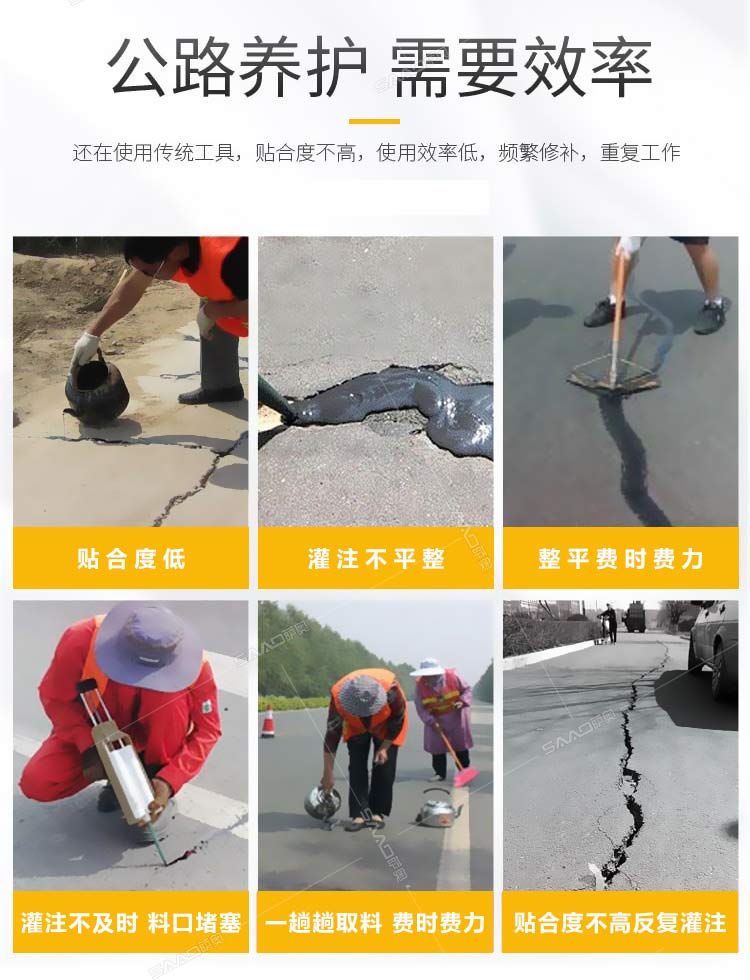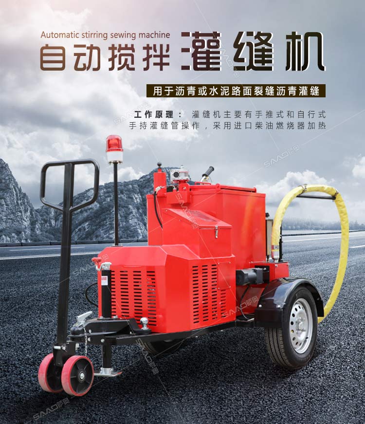 120升自动搅拌款灌缝机用于沥青或水泥路面裂缝沥青灌缝,注意:在灌缝前要对裂缝内的尘土进行清缝处理。