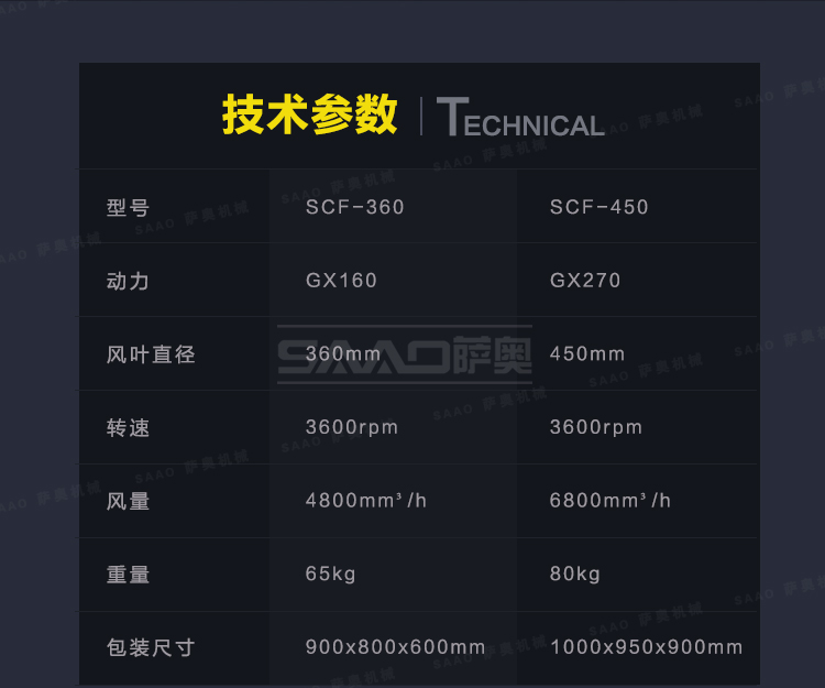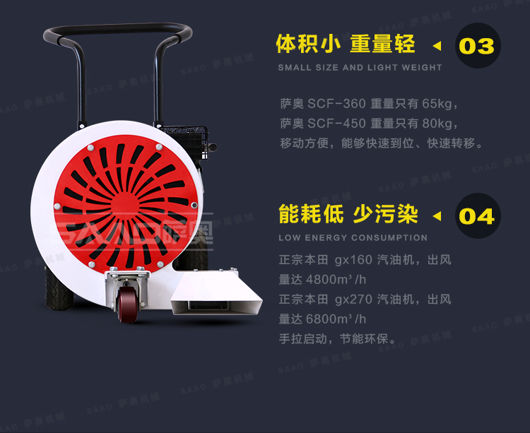 名优动力,性能稳定;动力平衡极好的风页,保证整机的稳定性;超大风量,性能优越。
