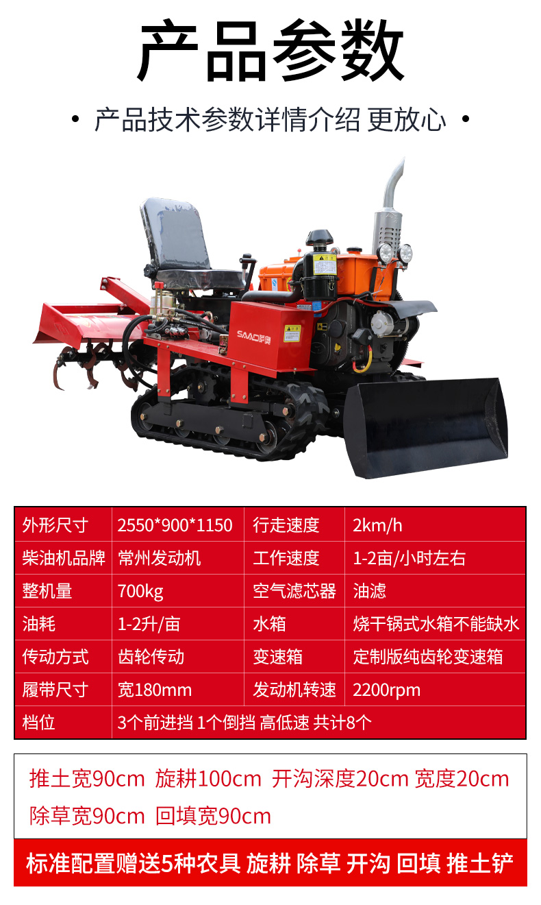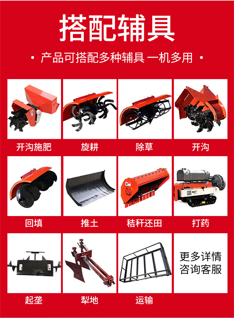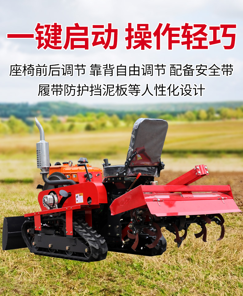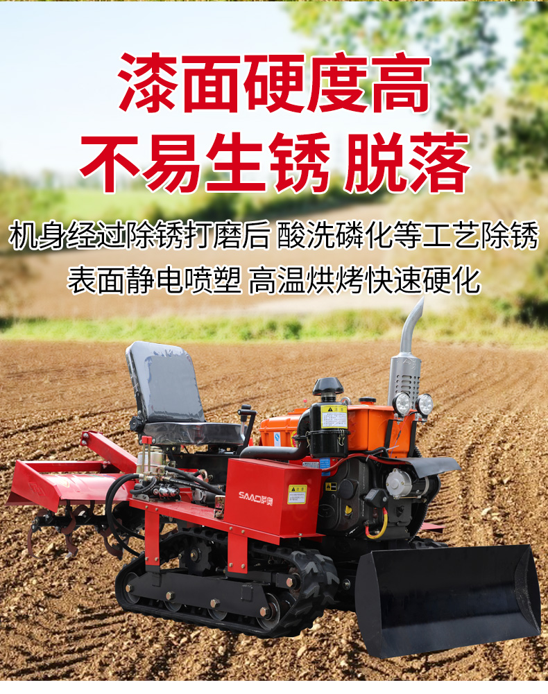 25马力旱地履带旋耕机适用于大面积、小面积清除杂草,适用于果园、农田、玉米地、山地的除草作业,打药/旋耕/犁地/开沟施肥/回填/除草/起垄都可以。