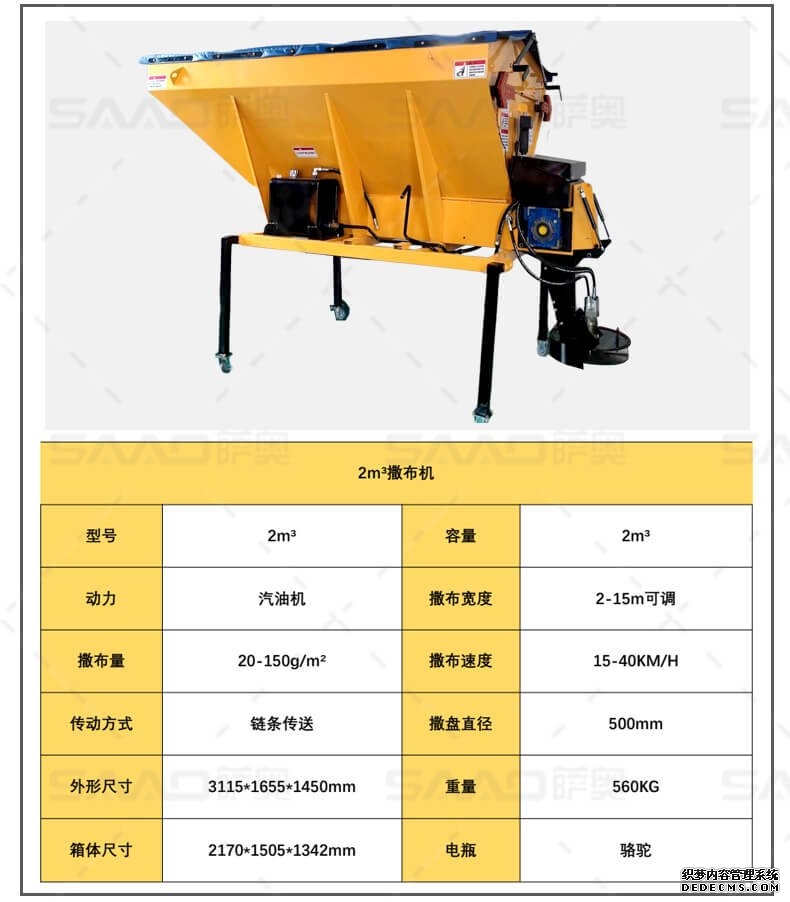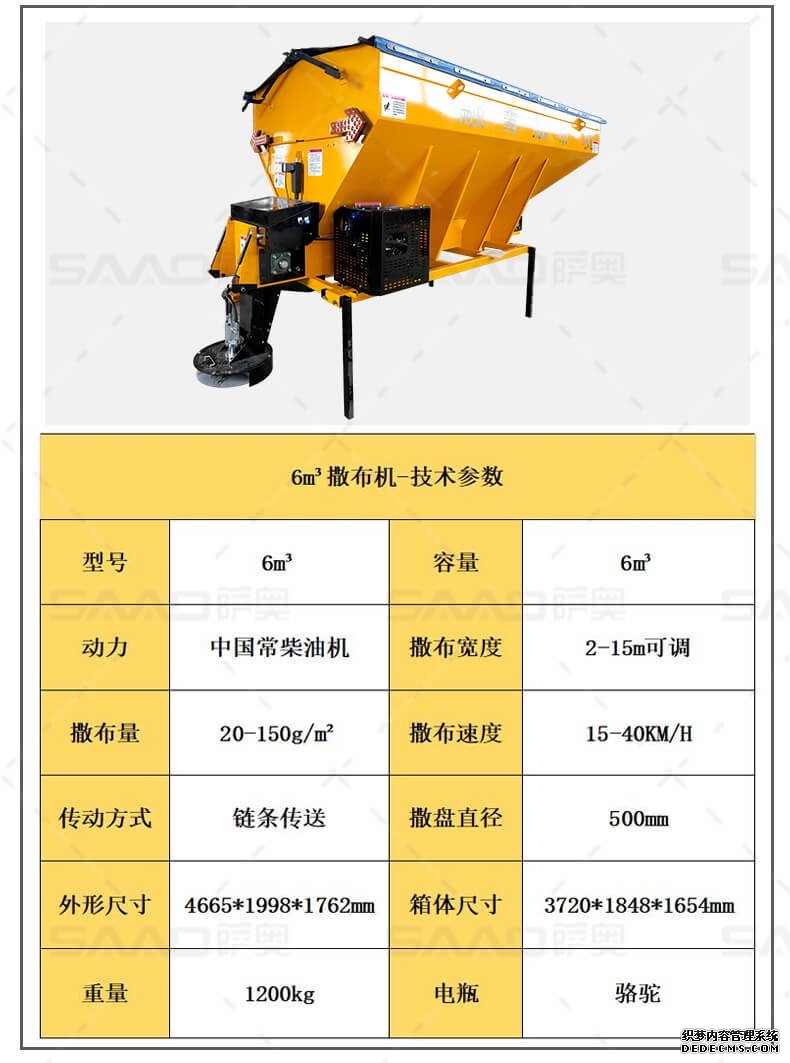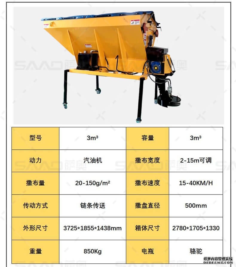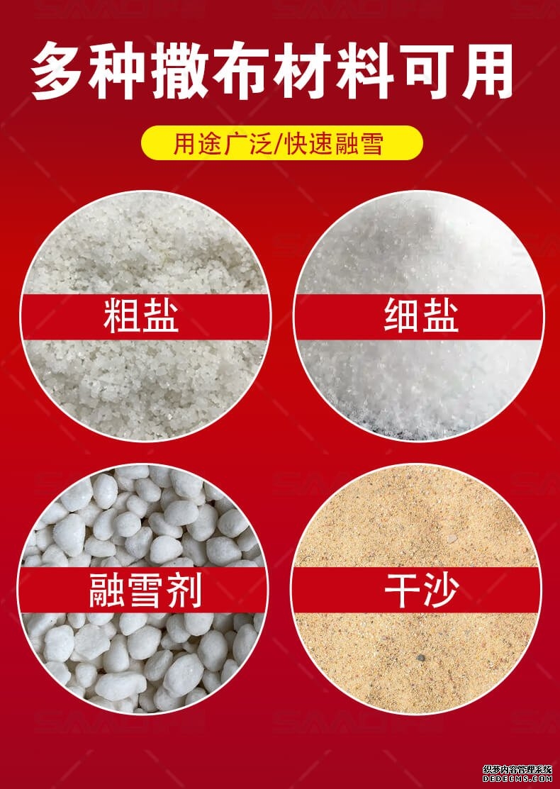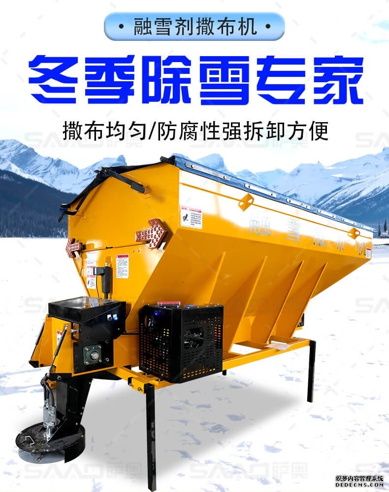 融雪剂撒布机是车载式撒布机,适用于冰雪路面防滑沙料和融雪剂的撒布,是市政公路、高速公路的融雪撒布的便利设备。