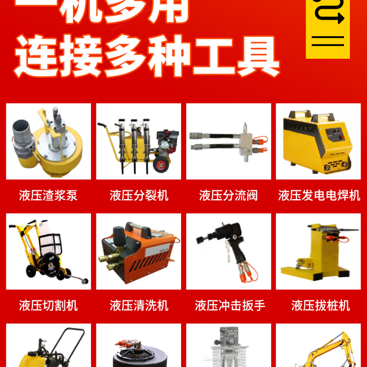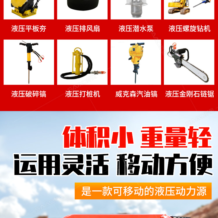【产品用途】 在公路市政养护、燃气自来水抢修、地震和消防救援作业中提供方便可靠的动力源。 【产品介绍】 液压动力站是为各种液压工具提供液压动力的泵站,像液压渣浆泵、液