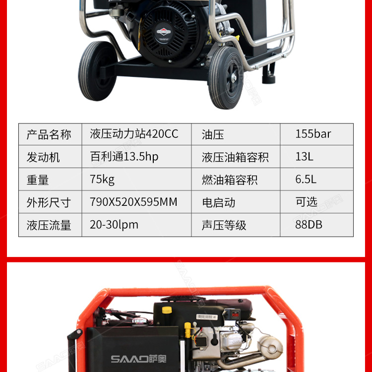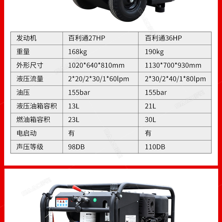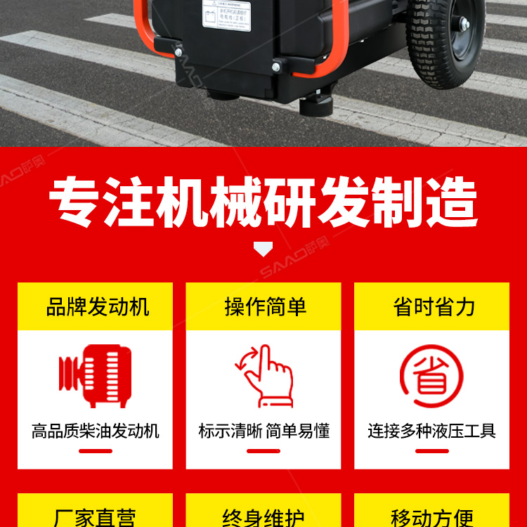 液压动力站使用广泛公路市政养护/燃气自来水抢修/地震和消防救援作业等