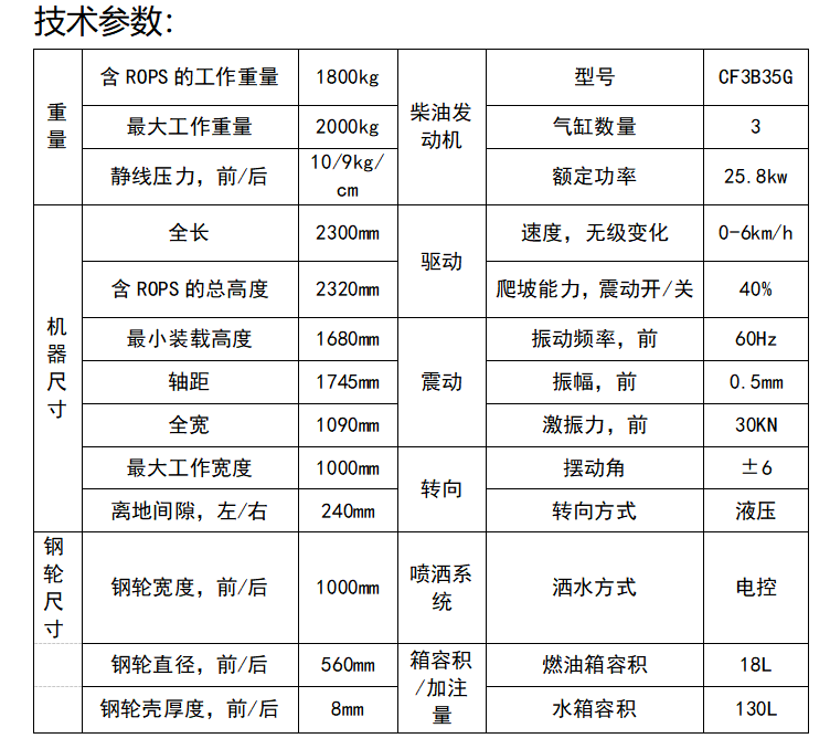 此款压路机自重1050kg,振动力可达3吨,液压转向。