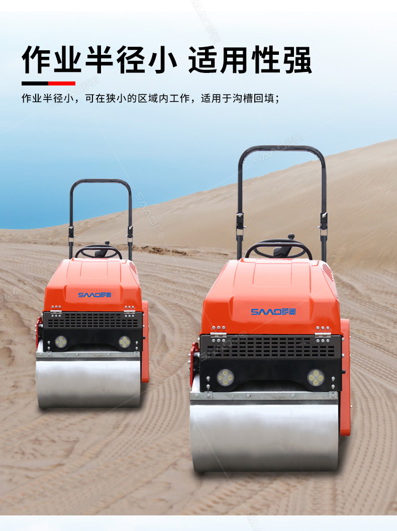 1t小型座驾压路机体积小,行走灵活,可以用于沥青压实、回填作业、沟槽压实作业、体育场地等压实作业,应用范围广,性价比高。经典橘红色款非常受欢迎。