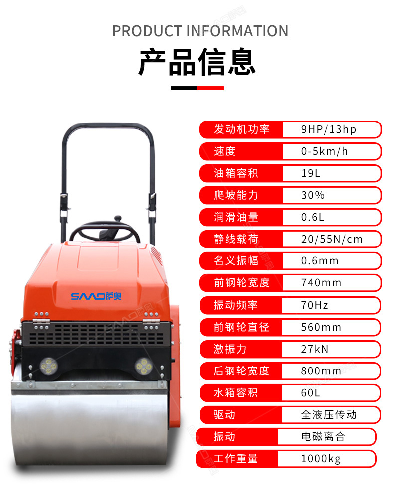 全液压手扶压路机