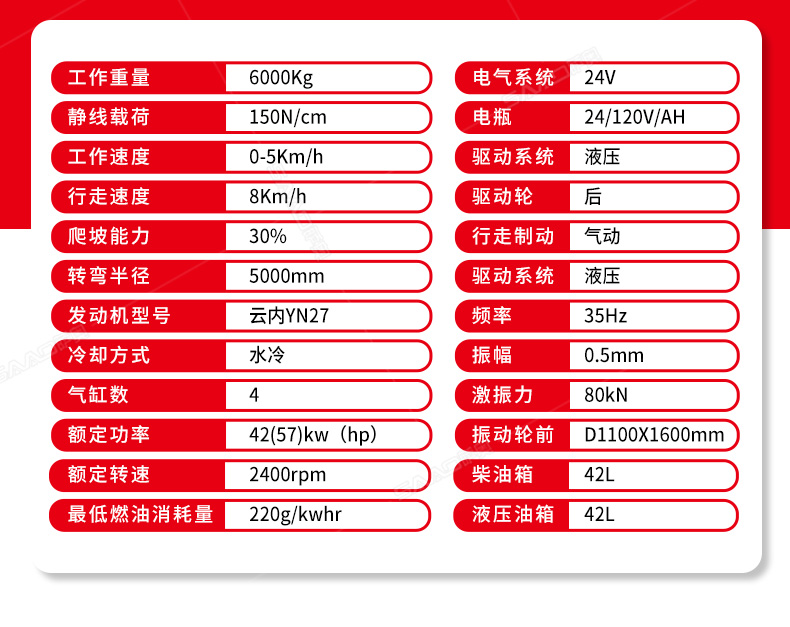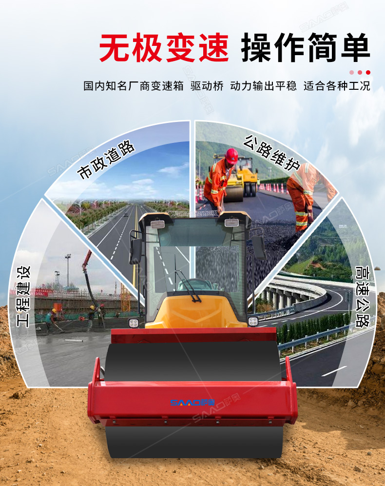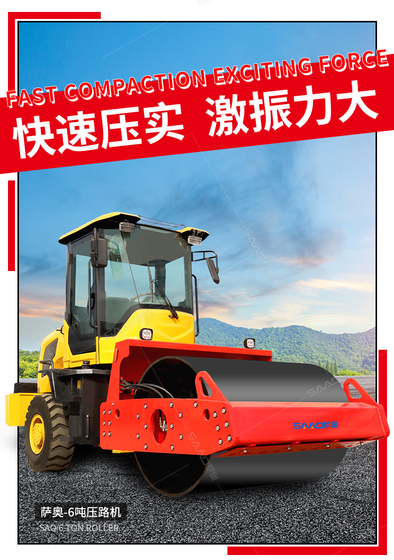 6吨压路机主要应用市政道路、公路维护,具有强大的激震力及很高的静线压力,适宜于碾压非粘性材料如砾石、砾土、碎石、砂石混合料和岩石填方以及粘土等。